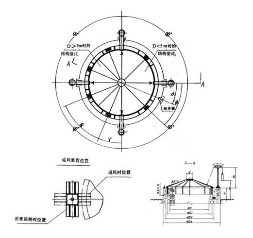 本立風井防爆門為防爆蓋、返風裝置、重錘裝置等部件組成。